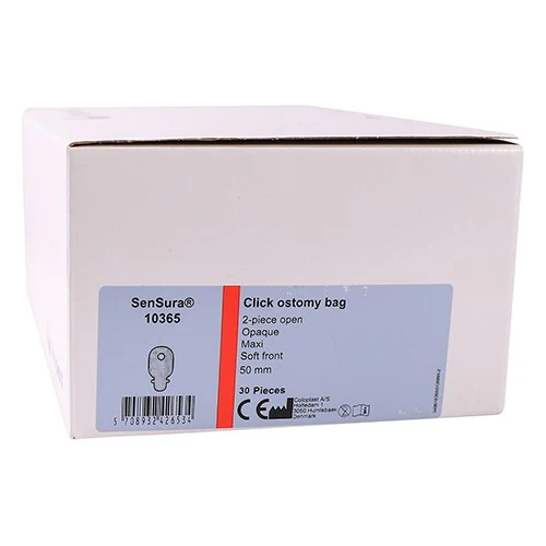 Coloplast 10365 SenSura Opaque Ostomy Bag 50mm is designed for use with SenSura two-piece base plates, offering a secure and comfortable pouching solution for daily ostomy care.
