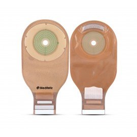 Medifeliz Single-Piece Colostomy Bags are ideal for people whose stoma output is semi-formed to formed. Drainable ostomy pouch and a Lock n Roll closure. This standard wears a drainable ostomy pouch that has an odor barrier film and a Comfort Wear panel on the body side for added comfort and peace of mind. The double Lock n Roll closure system is easy to use, empty, and clean. To close, simply roll the pouch tail three times in one direction and seal from the middle. To empty, pinch the sides of the tail pouch and control the flow of the output. To clean, wipe the pouch tail with a damp cloth.