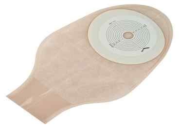 - One-piece ostomy system (pouch + adhesive integrated)