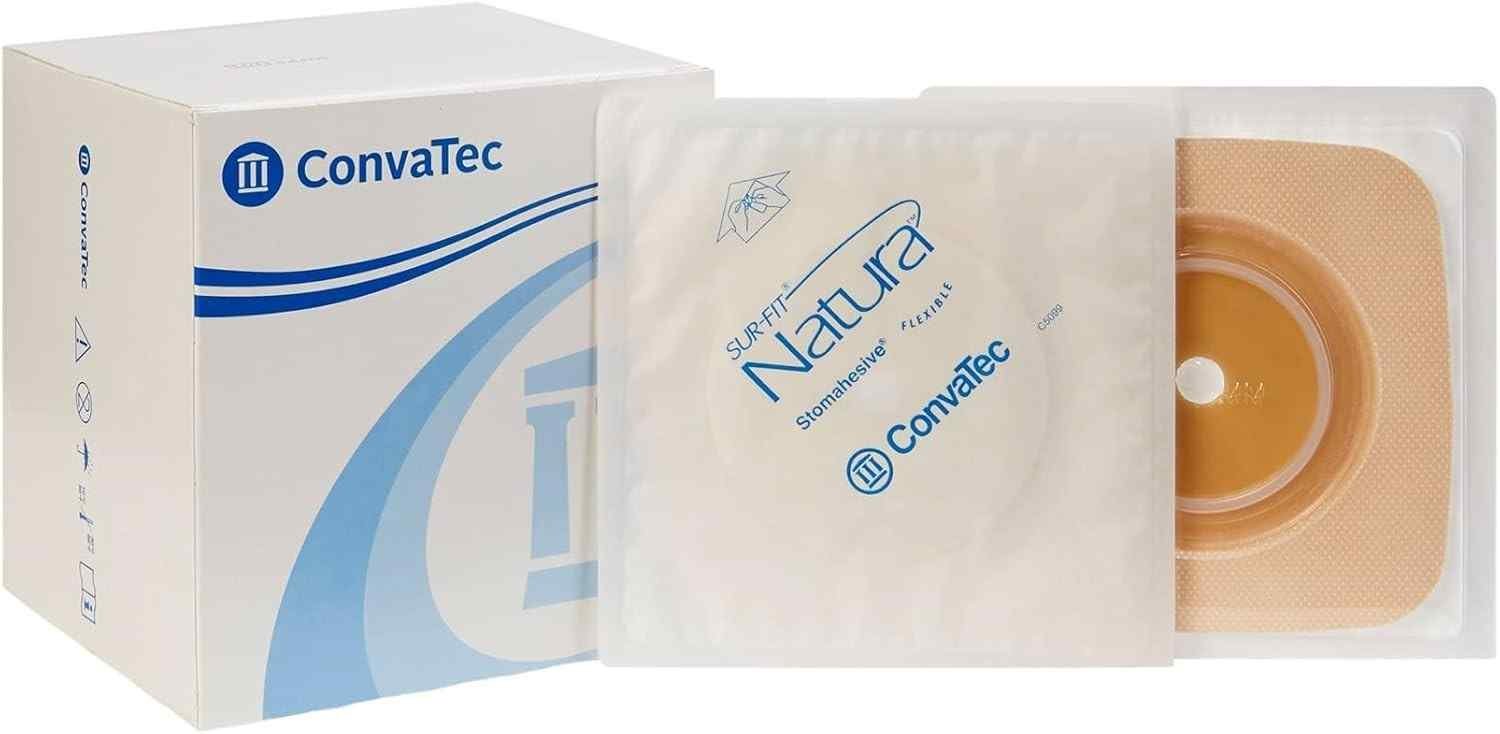 Convatec 125264 Natura Sur-Fit Stomahesive Flexible Wafer with Collar is a high-quality ostomy skin barrier designed for use with Natura Sur-Fit two-piece pouches. It features Stomahesive technology, which provides dependable adhesion while being gentle on sensitive peristomal skin.