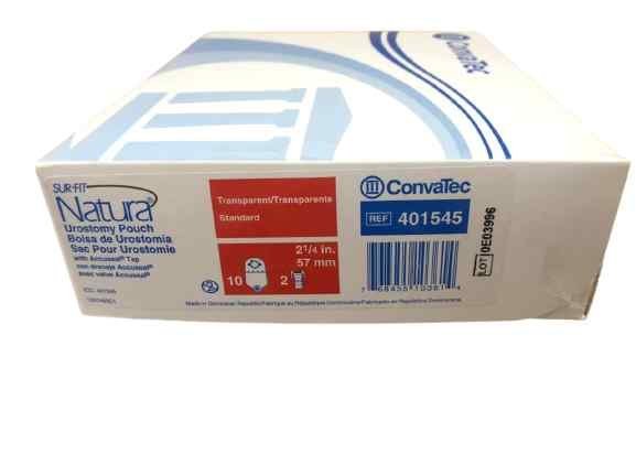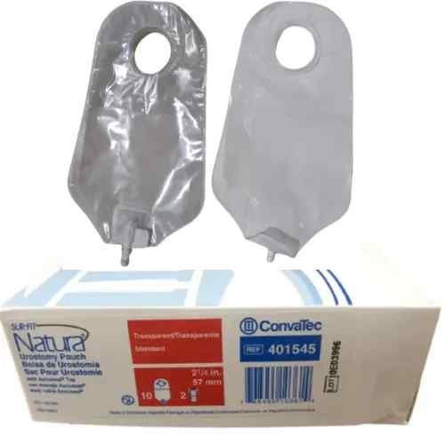 ConvaTec 401545 SUR-FIT Natura Urostomy Pouch is a two-piece urostomy pouch designed for continuous urinary drainage. With a 57mm flange size, secure snap-on coupling, and a built-in anti-reflux valve, it ensures reliable, hygienic, and comfortable urostomy care. Supplied as a pack of 10.