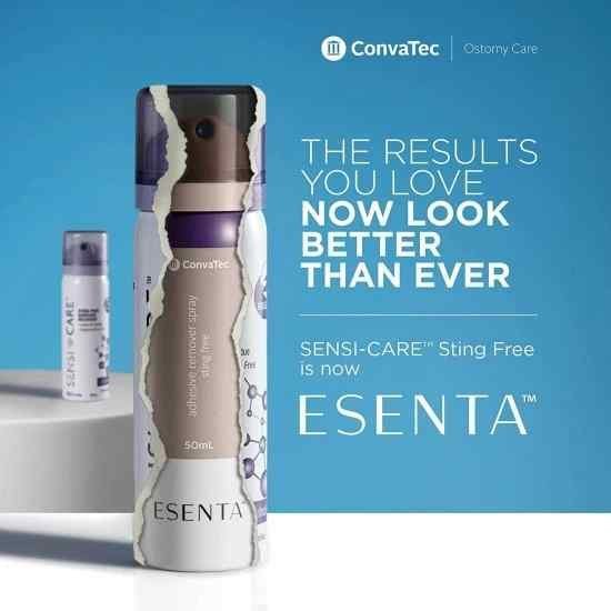 ConvaTec ESENTA Adhesive Remover Spray Sting-Free (50ml) enables gentle, painless removal of ostomy appliances and medical adhesives. Its alcohol-free, silicone-based formula protects sensitive skin while removing adhesive residue quickly and effectively.