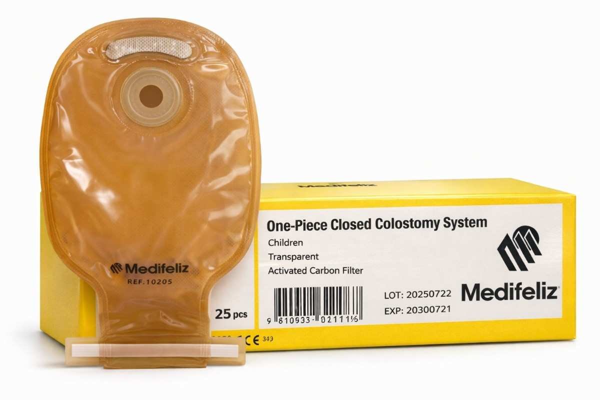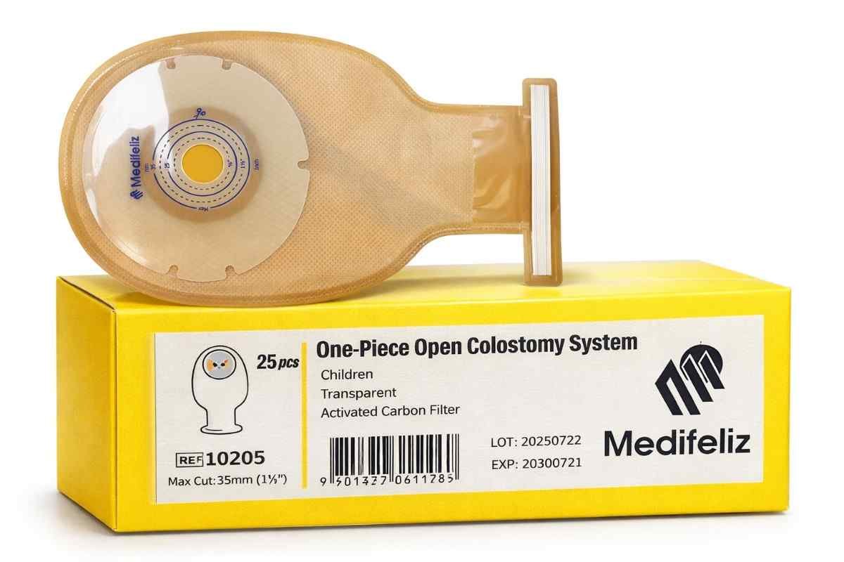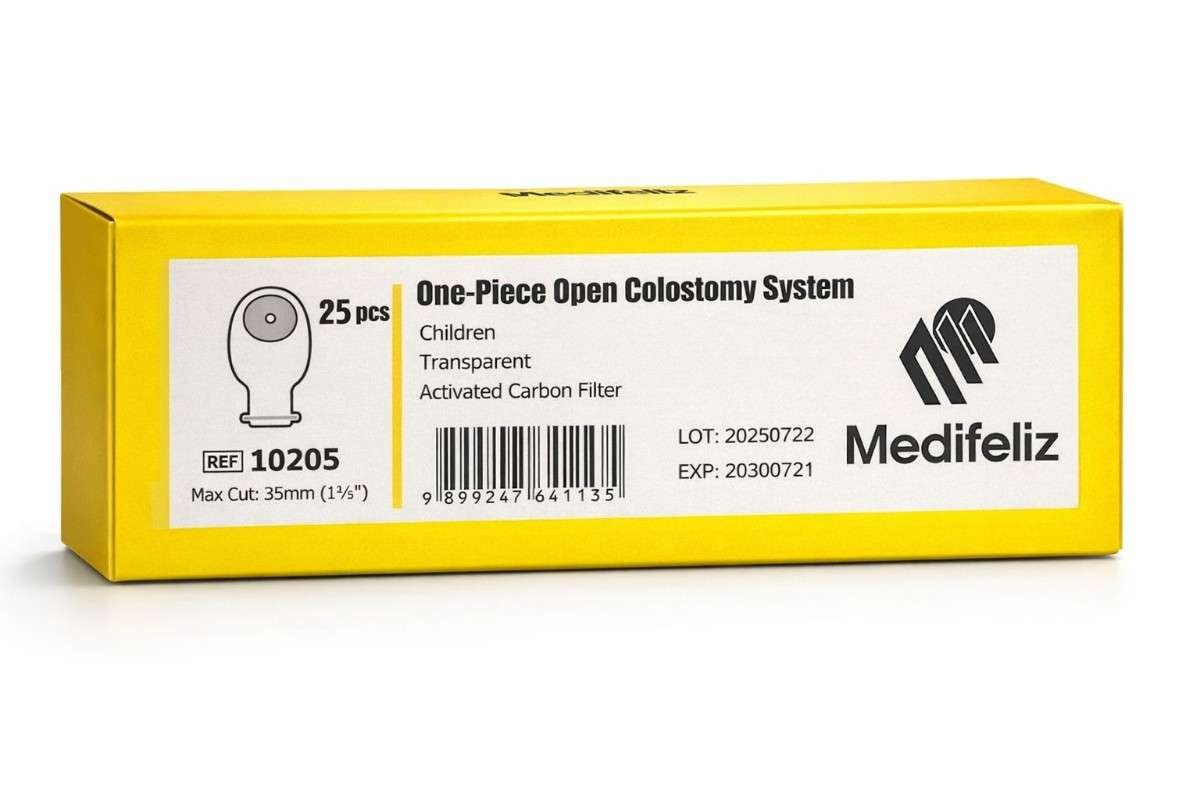 ​​Medifeliz 10205 Children One-Piece Open Colostomy Bag is specially designed for pediatric colostomy patients. It provides a secure, comfortable fit with a skin-friendly adhesive and an open-end design for easy and hygienic drainage. Ideal for daily use in both home and hospital settings.