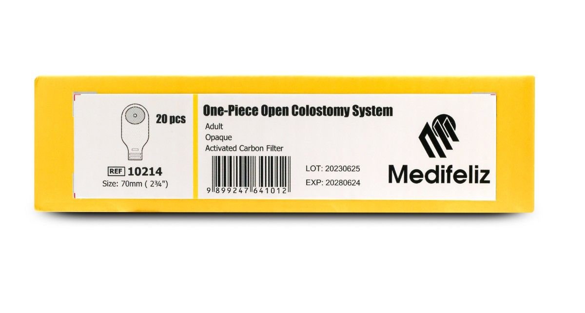 Medifeliz 10214 One-Piece Open Colostomy Bag is engineered to provide dependable performance and maximum comfort for individuals living with a colostomy. The one-piece system integrates the pouch and skin barrier into a single unit, simplifying application and removal.