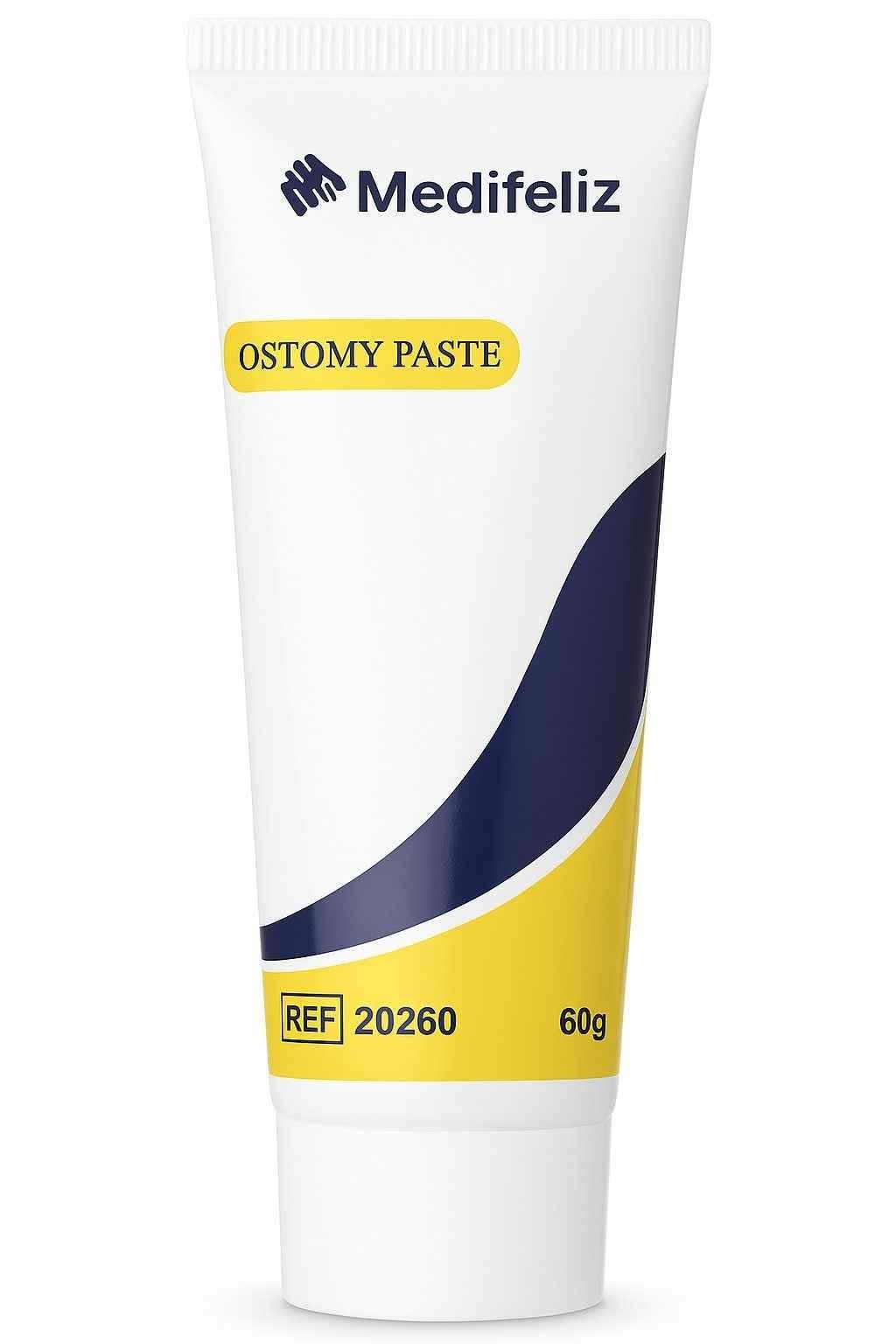Medifeliz Ostomy Paste – 60gm (Ref: 20260) is an essential accessory for effective ostomy management. It acts as a sealing agent rather than an adhesive, helping to fill gaps, creases, and skin irregularities around the stoma. This creates a smoother surface for the ostomy skin barrier, resulting in improved fit and reduced risk of leakage.